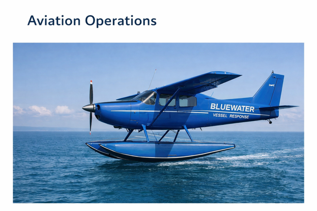 Bluewater Vessel Response Team (BVRT) operates an aviation-enabled response platform purpose-built to support maritime operations. Our aircraft provide rapid access to vessels offshore, reducing downtime, operational risk, and exposure when traditional marine logistics are insufficient.